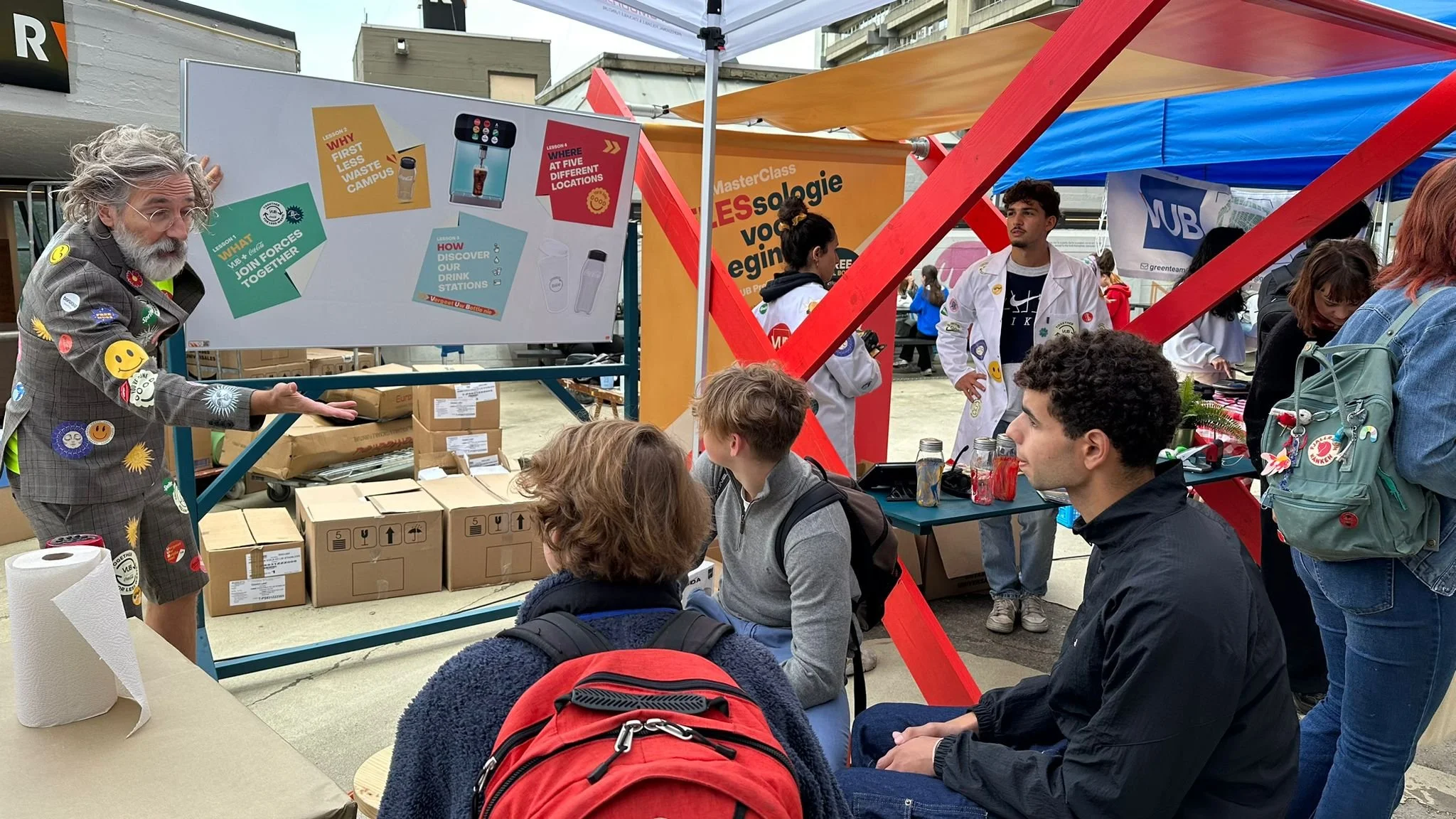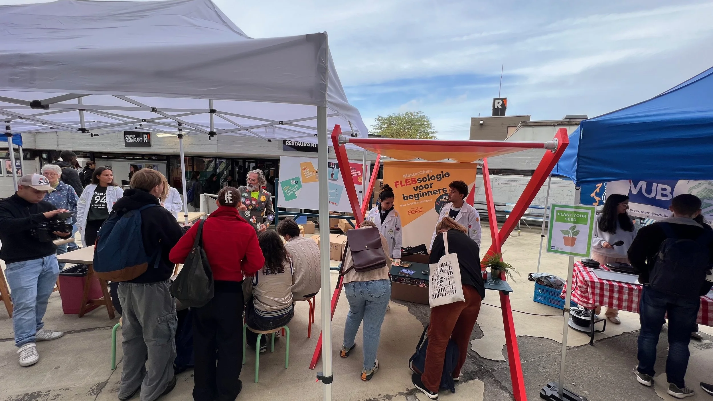 Idea: Starting from the insight that GEN Z is pro-sustainability but lacks often the motivation to participate actively in recycling, we created the “PRO FLESSOR” campaign. It’s started with teasing campaigns about “things to know about recycling”. At the start of the academical year we created an event where an actor convinces students to switch towards re-usable cups. We created also POS materials at the cafeterias to support this habit change.
